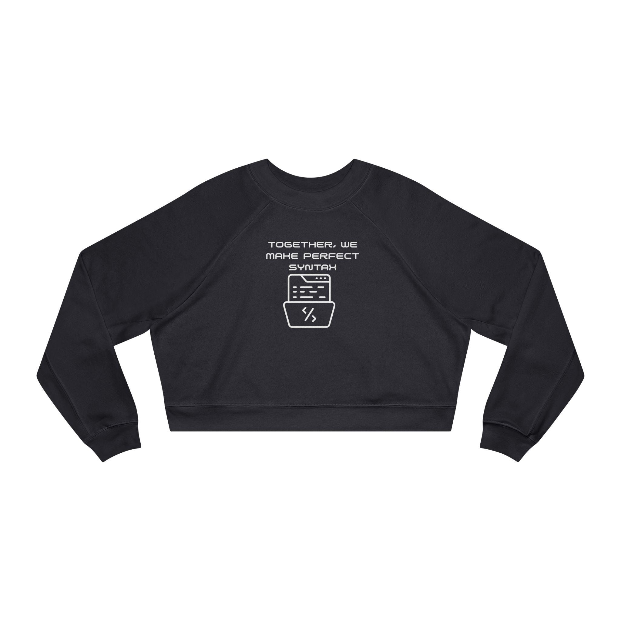 Celebrate love in style with this trendy cropped sweatshirt, featuring the sweet and geeky phrase 'Together we make perfect Syntax'. Perfect for Valentine’s Day, anniversaries, or just to show your partner some love, this women’s fleece pullover combines coziness with a touch of charm.
