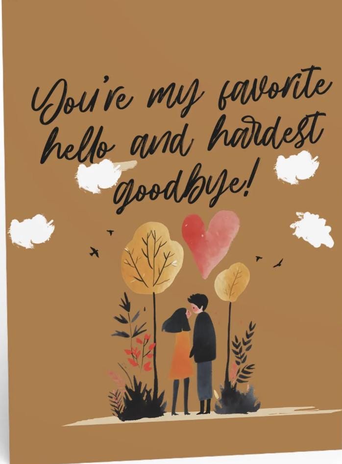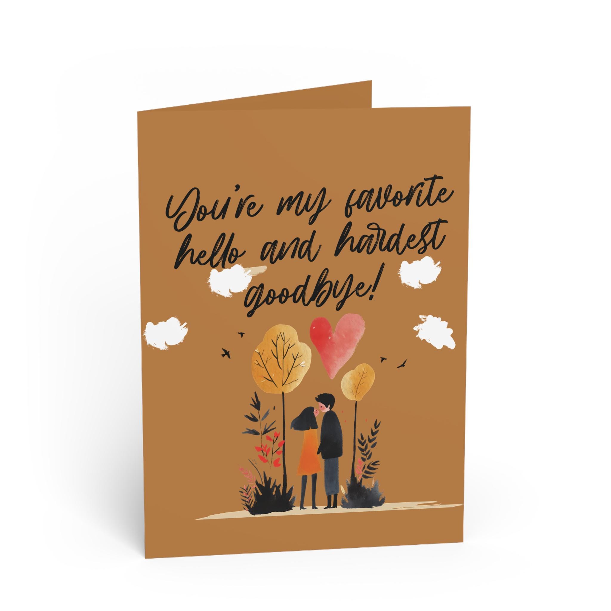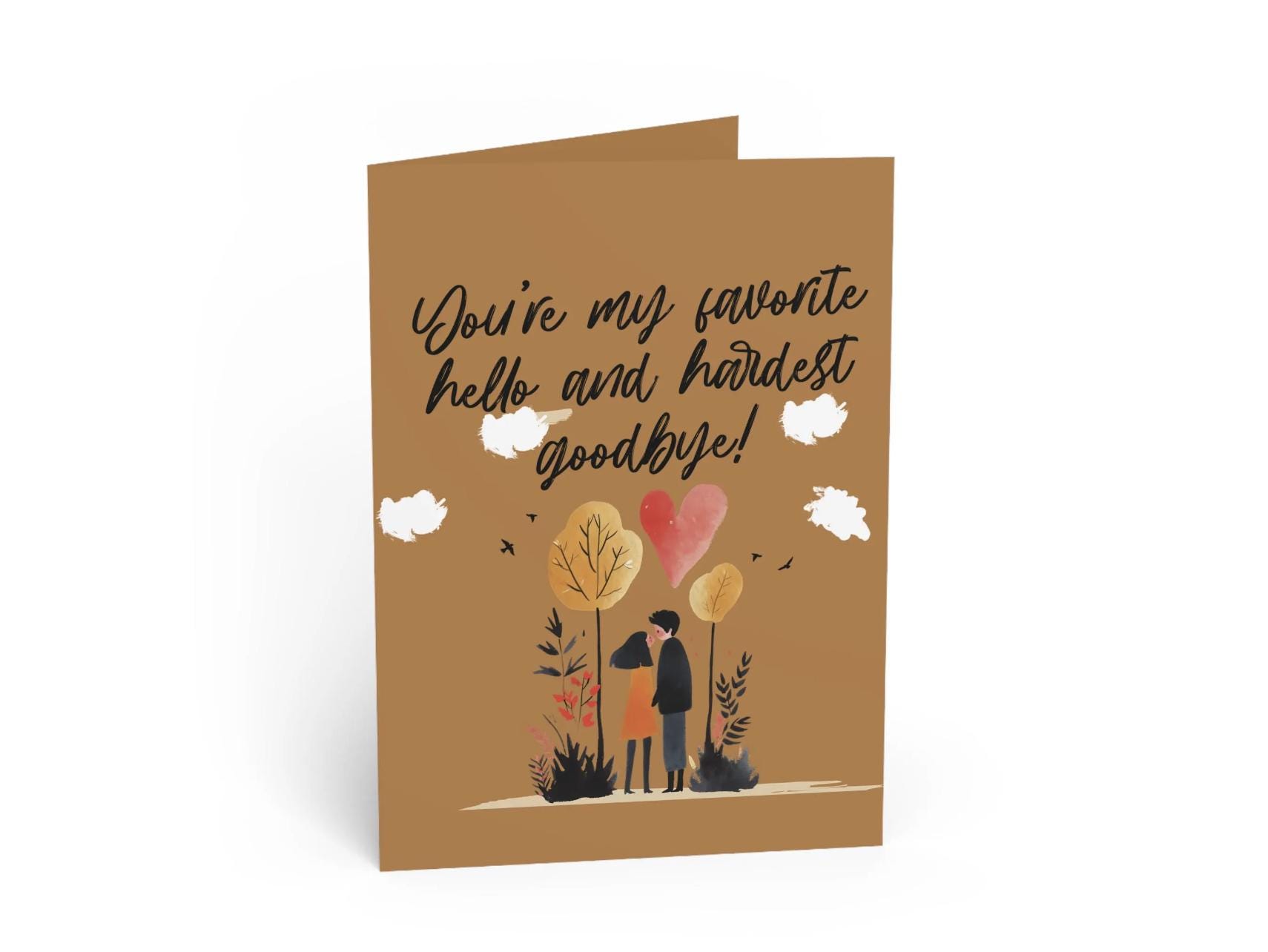 Send heartfelt messages with our 'You are my favorite hello and hardest goodbye' greeting card. Perfect for expressing love and appreciation on special occasions like birthdays, anniversaries, Valentine's Day, and more. Ideal for those who value personal connections and cherish handwritten notes.
