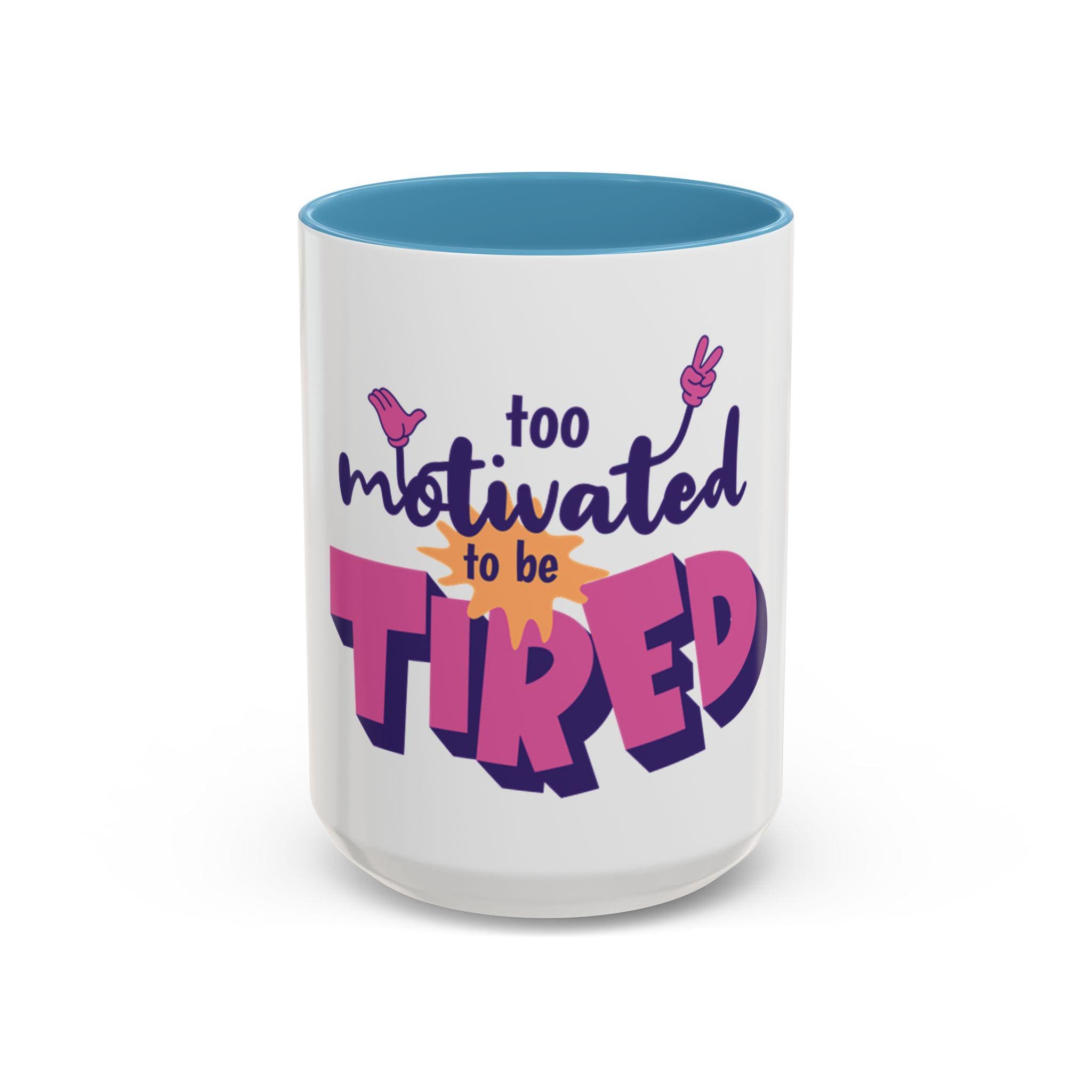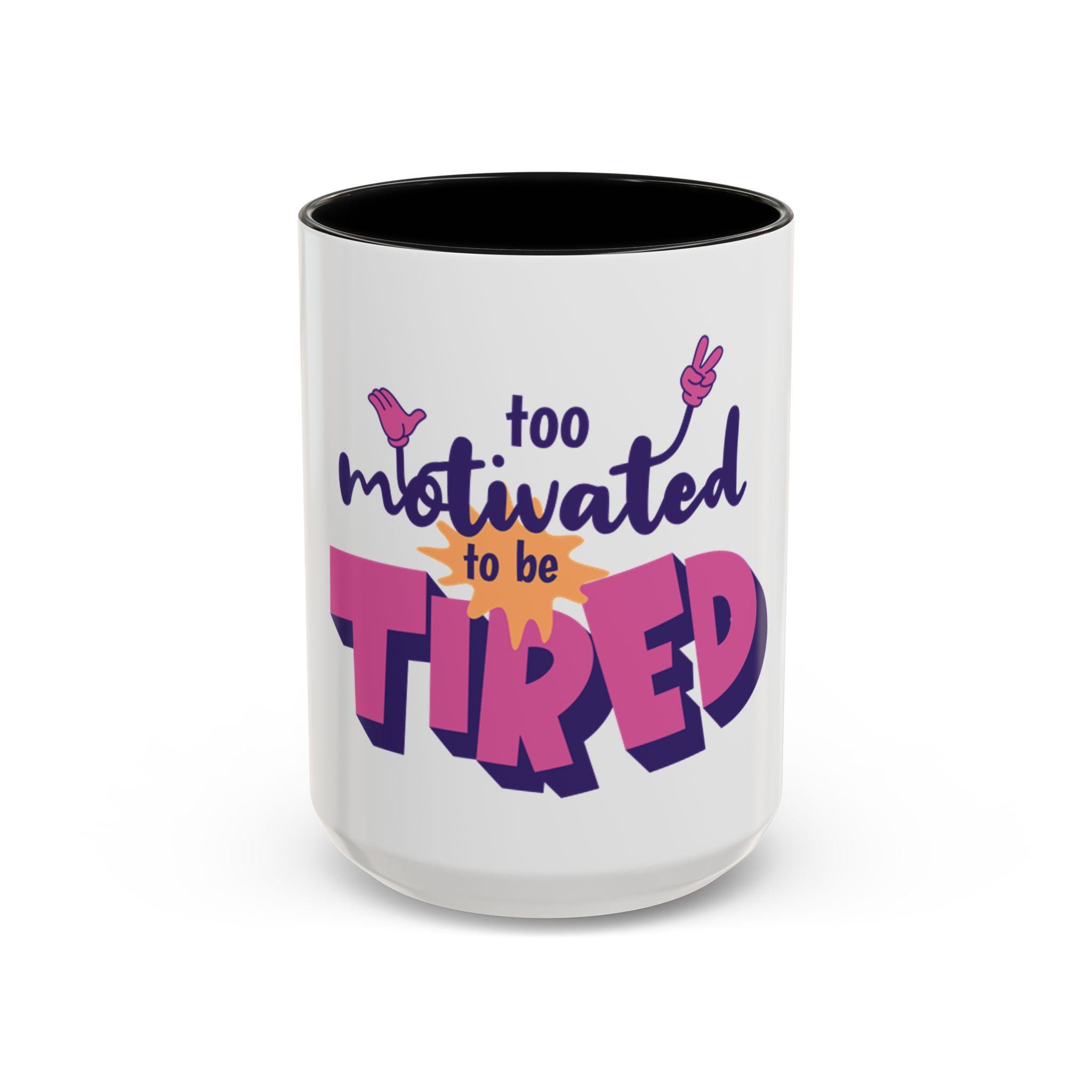Fuel your drive with our 'Too Motivated to Be Tired' Quote Accent Mug!