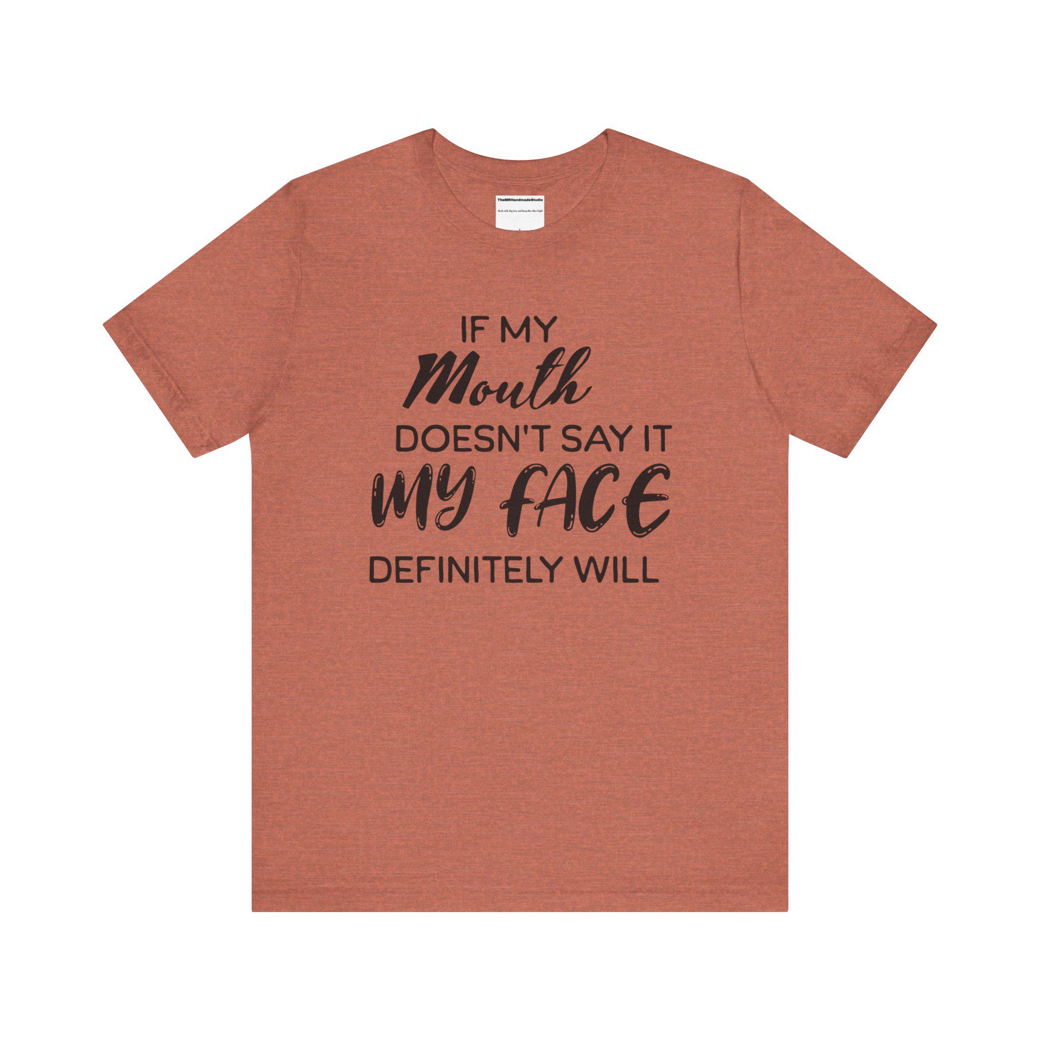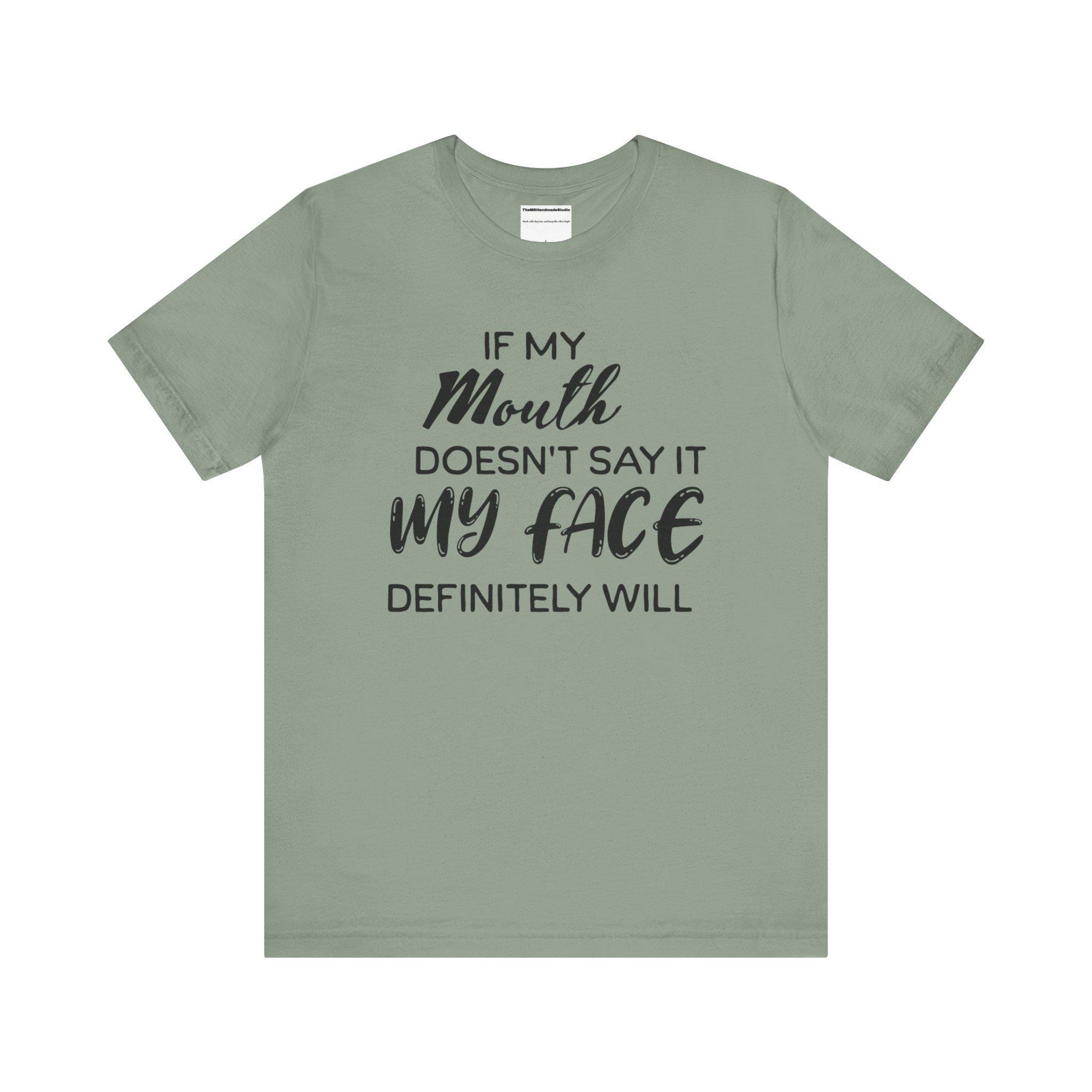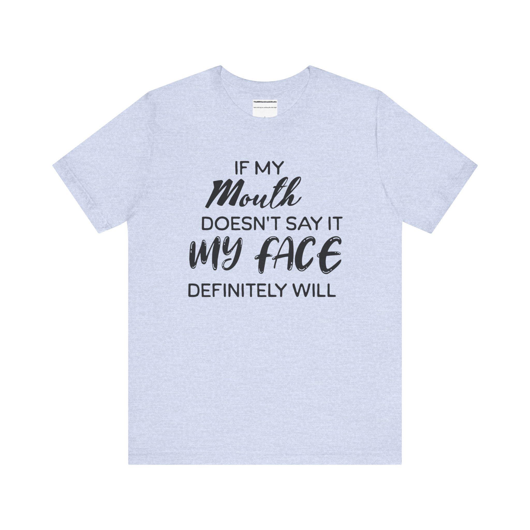 Whether you're in a cheeky mood or just want to express your unspoken feelings, this funny shirt is a great choice for casual outings, running errands, or hanging out with friends. Let your face do the talking and order your "If My Mouth Doesn’t Say It, My Face Definitely Will Say It" tee today!