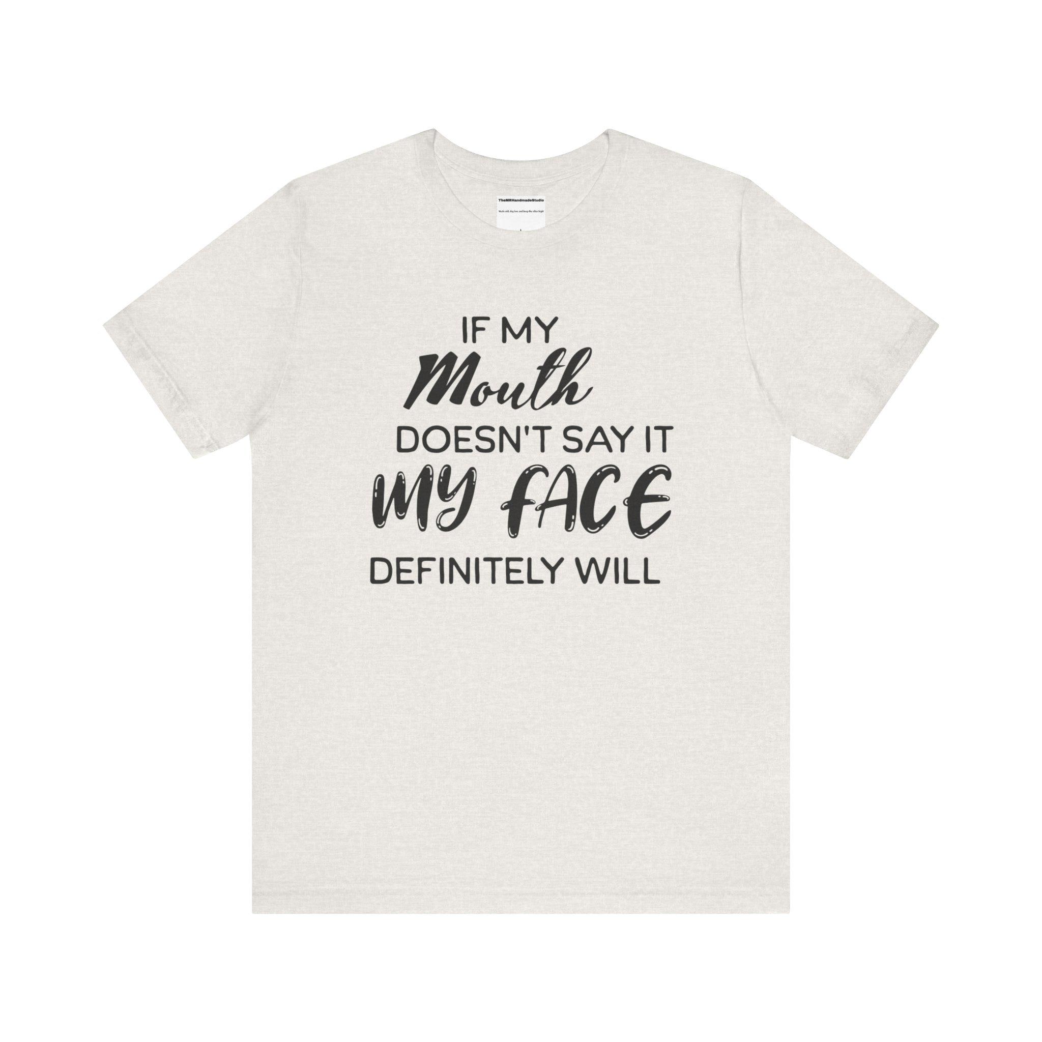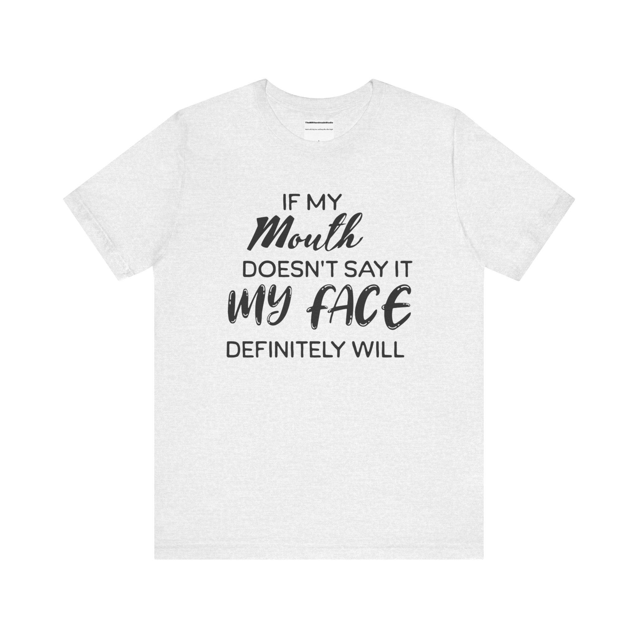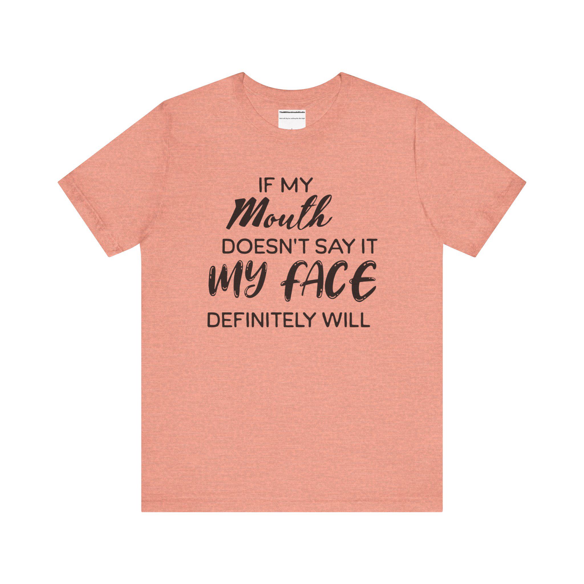 Whether you're in a cheeky mood or just want to express your unspoken feelings, this funny shirt is a great choice for casual outings, running errands, or hanging out with friends. Let your face do the talking and order your "If My Mouth Doesn’t Say It, My Face Definitely Will Say It" tee today!