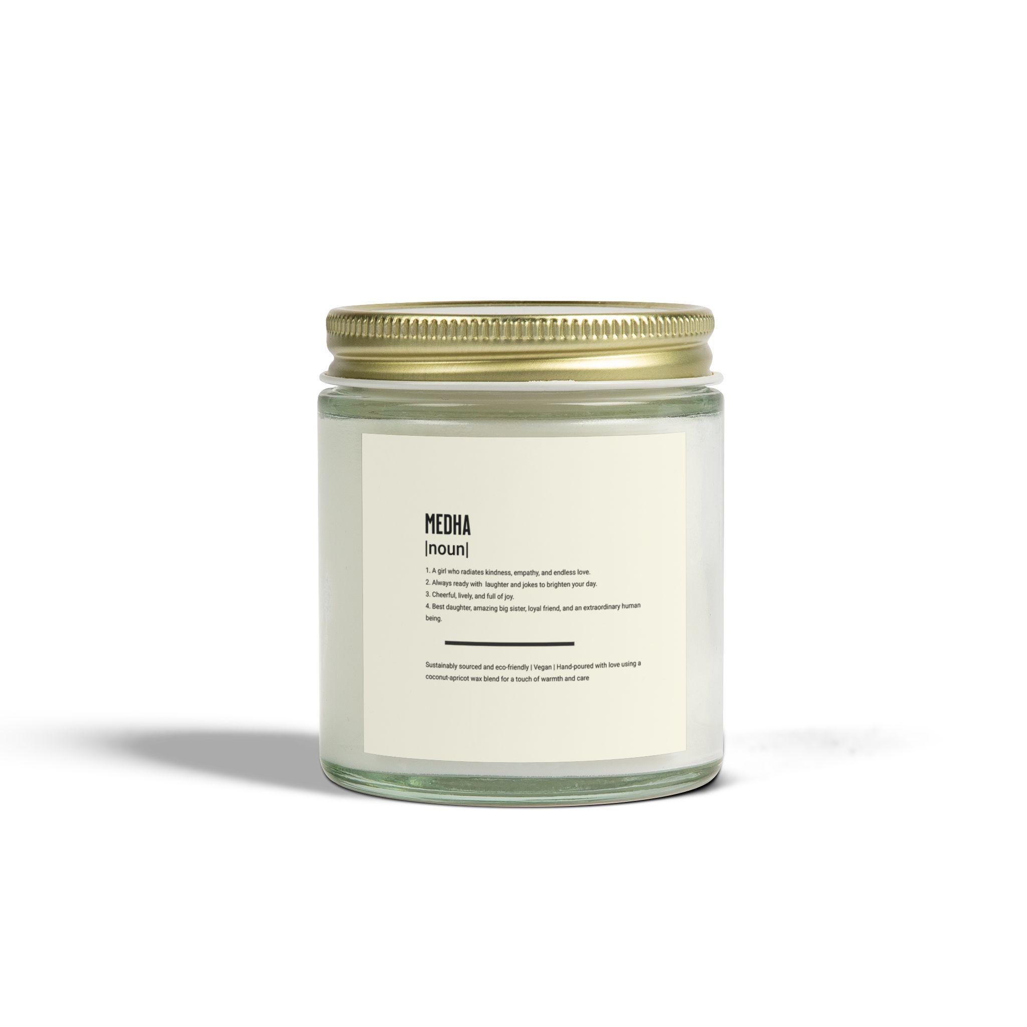Personalized Name Dictionary Candle made with natural and non-toxic Coconut Apricot Wax. Perfect as a Best Friend Gift, Birthday Gift for her, or Friendship gift. Offers a cozy and comforting atmosphere with various scent options. Ideal for those who appreciate unique and personalized gifts, relevant for birthdays, holidays, and special occasions.