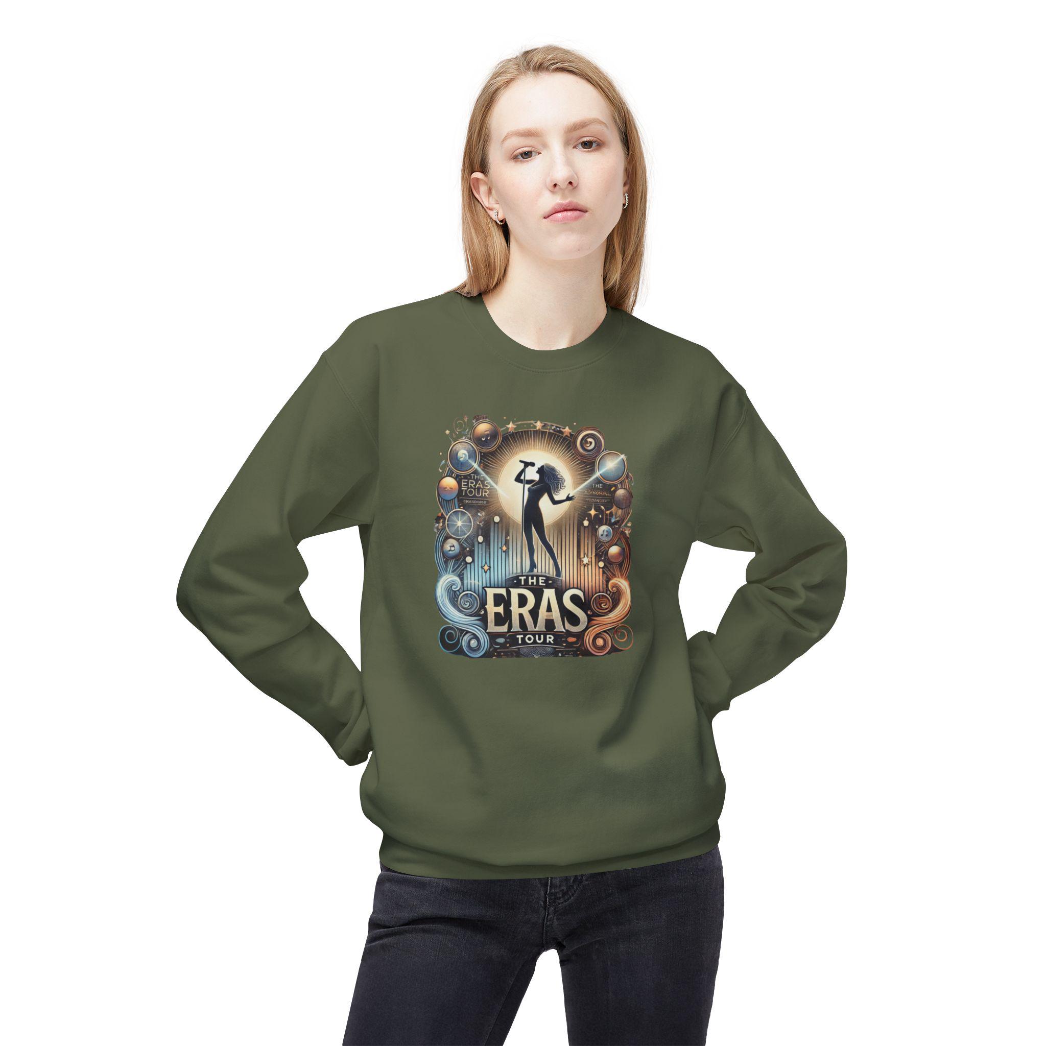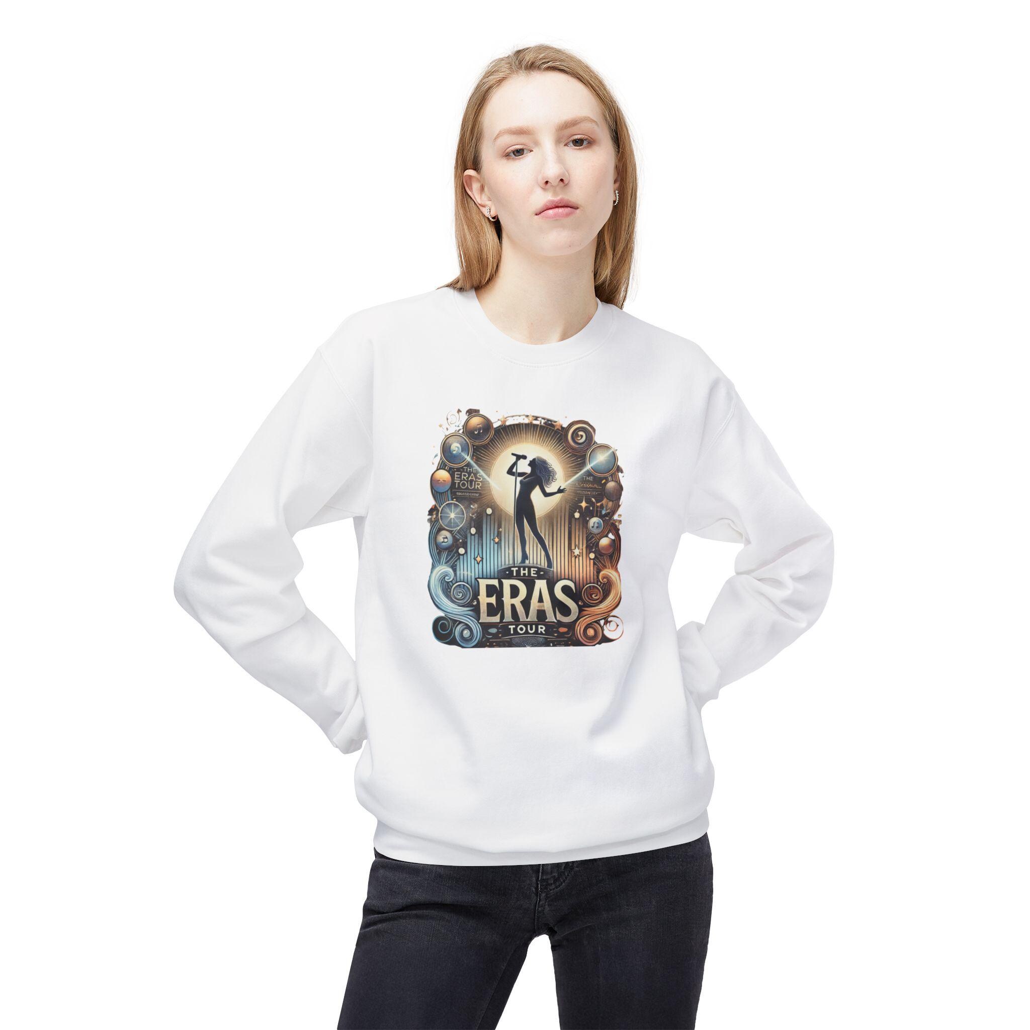 Stay cozy and stylish with The Eras Tour Sweatshirt, a must-have for Tay Tay fans! This unisex midweight softstyle fleece crewneck is perfect for showcasing your love for music and staying comfortable. With its timeless design and soft fabric, it’s ideal for chilly concert nights, lounging at home, or casual outings.