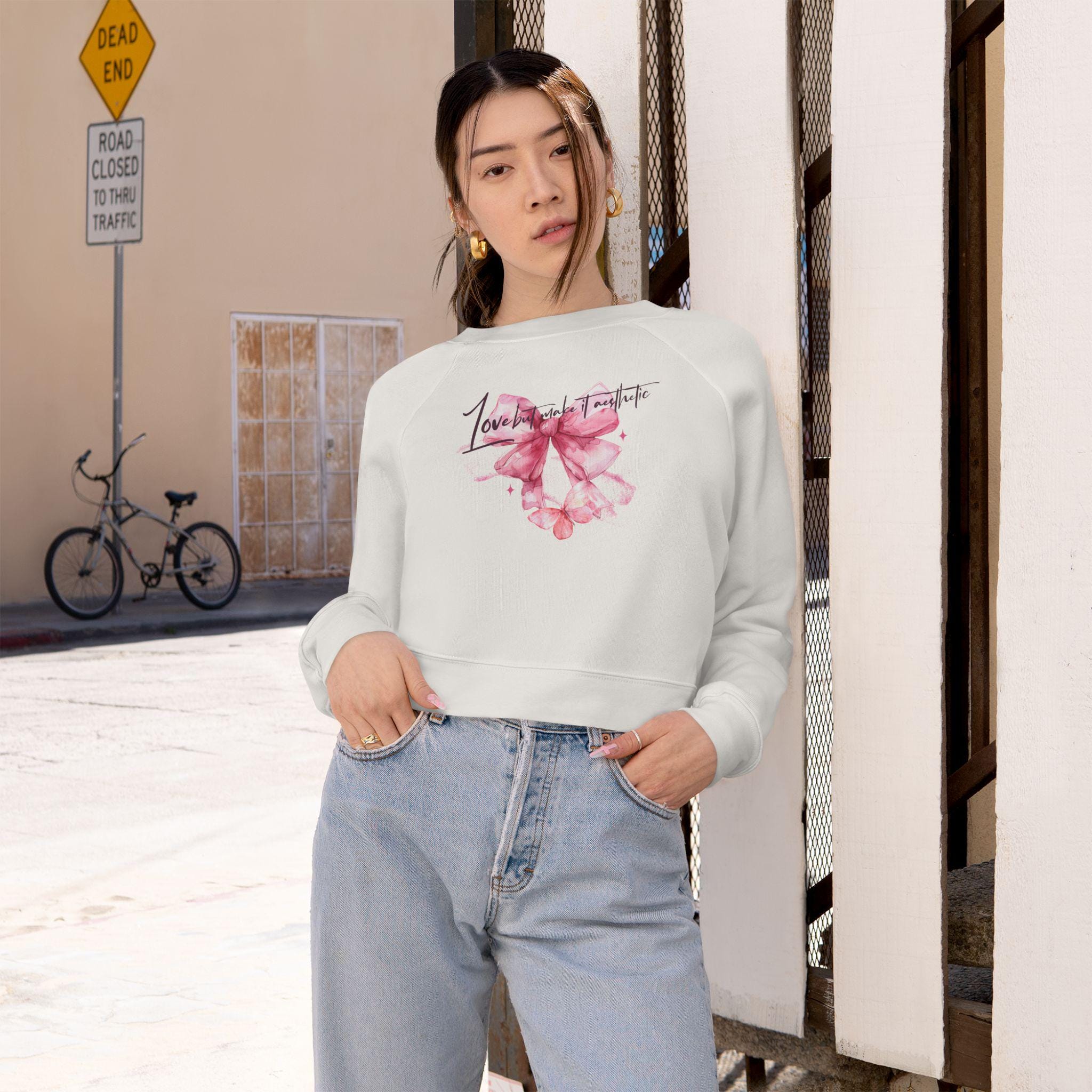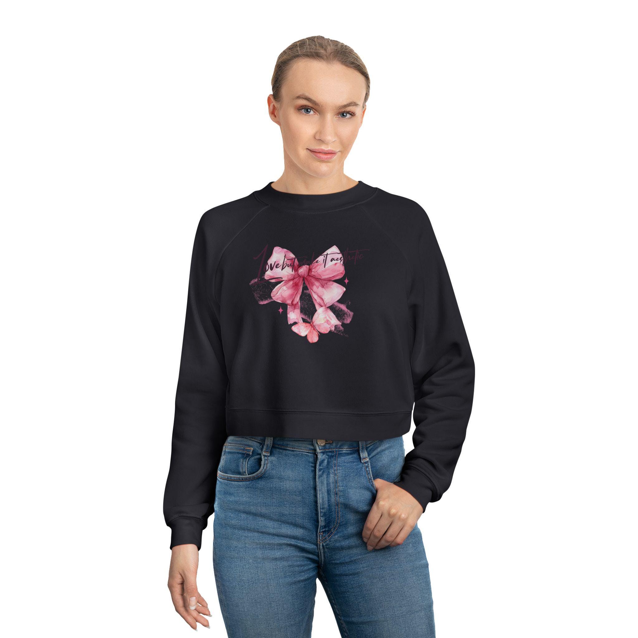 Cropped Sweatshirt - 'Love But Make It Aesthetic' Women's Fleece Pullover