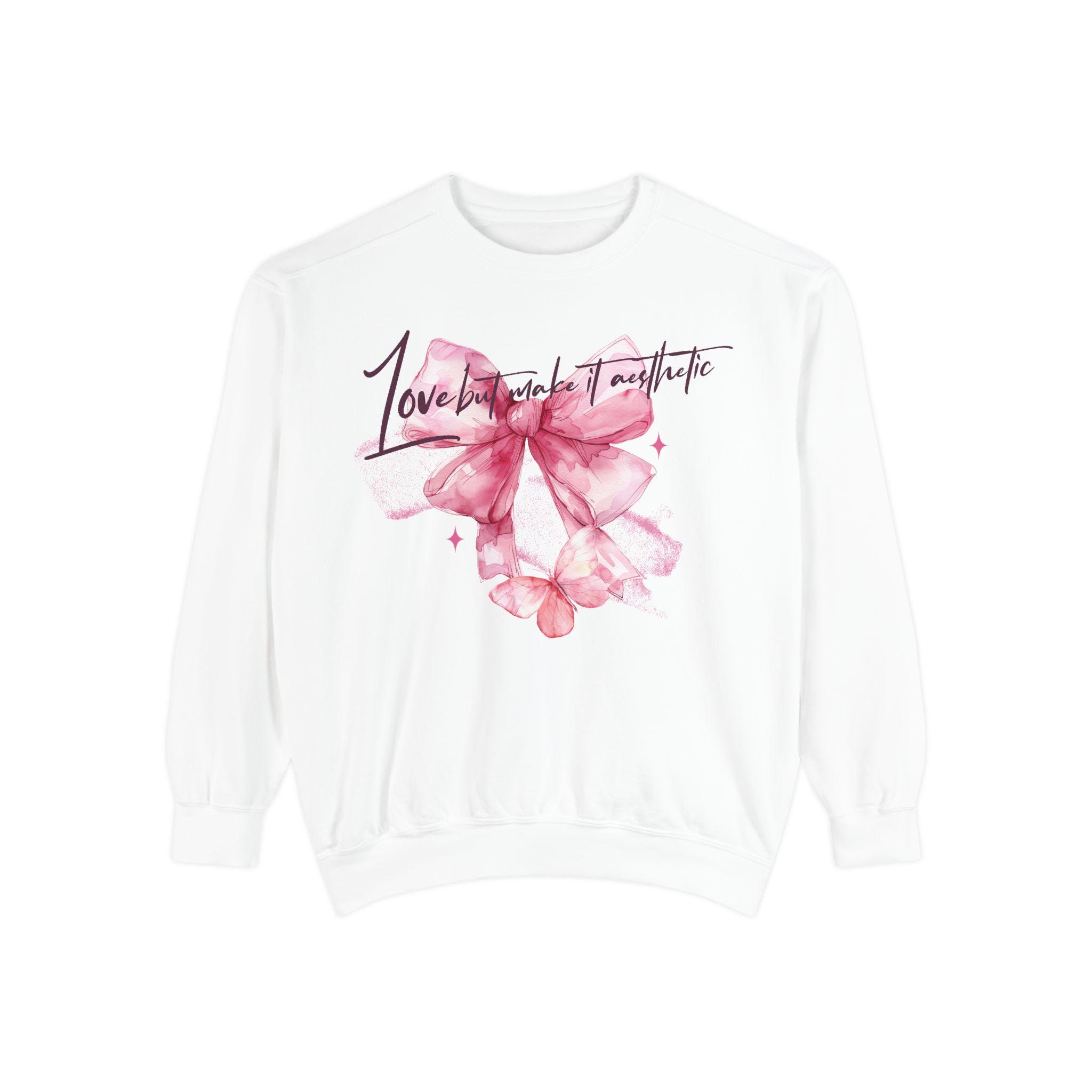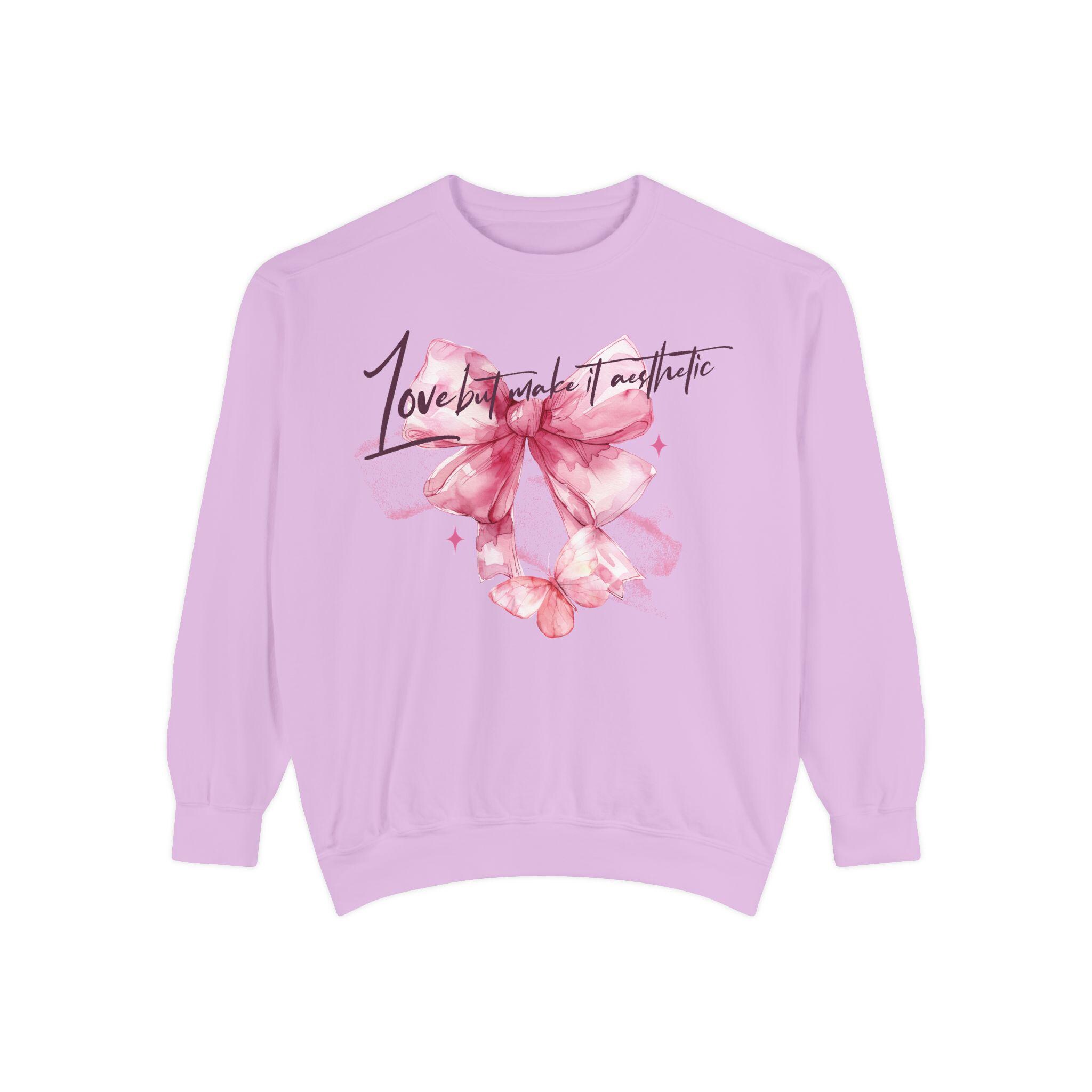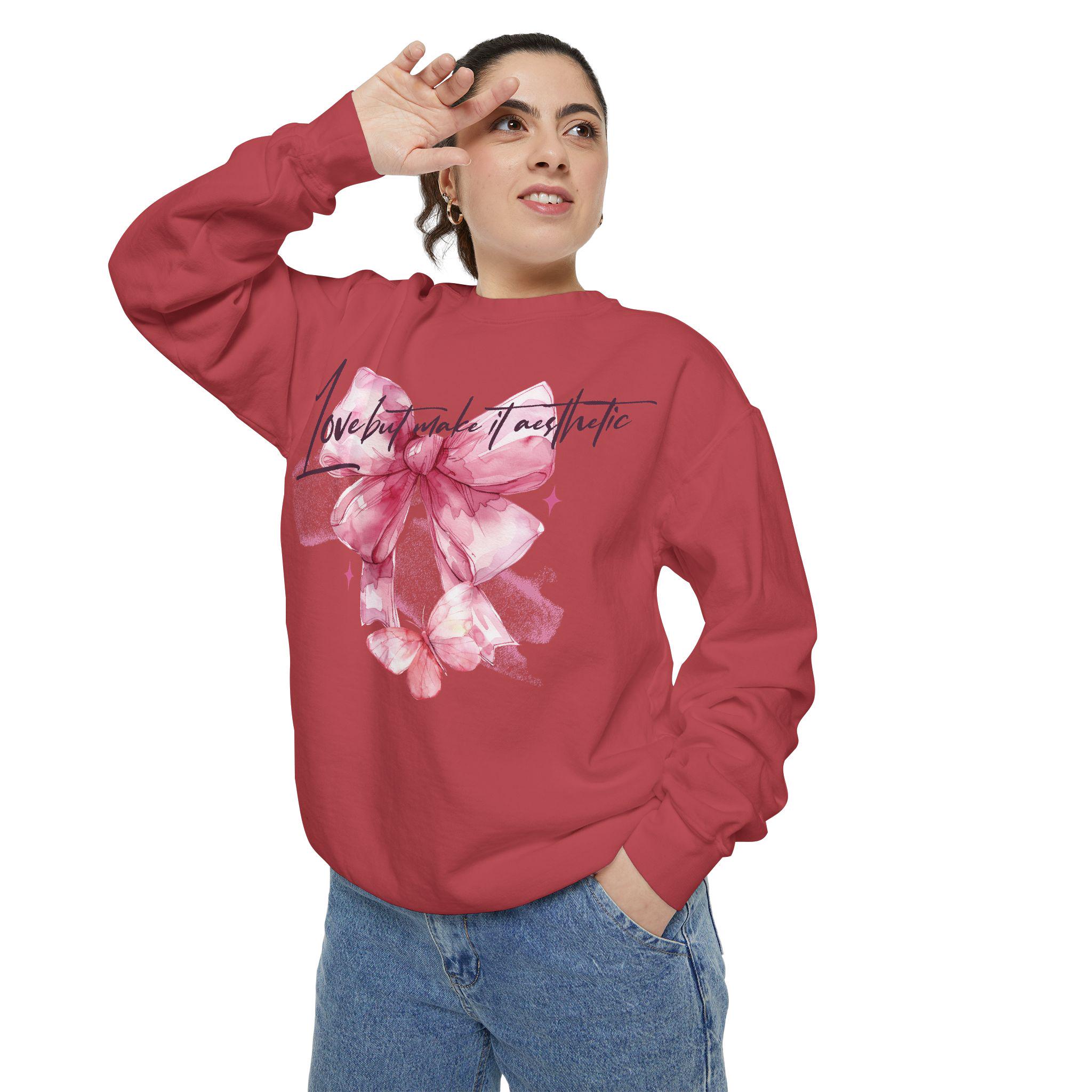 This Unisex Midweight Softstyle Fleece Crewneck Sweatshirt features Love but Make It Aesthetic design, giving off a cozy and casual vibe. Perfect for those who like to stay comfortable while expressing their love or just being Aesthetic. Great for Valentine's Day, anniversaries, or just for everyday wear.