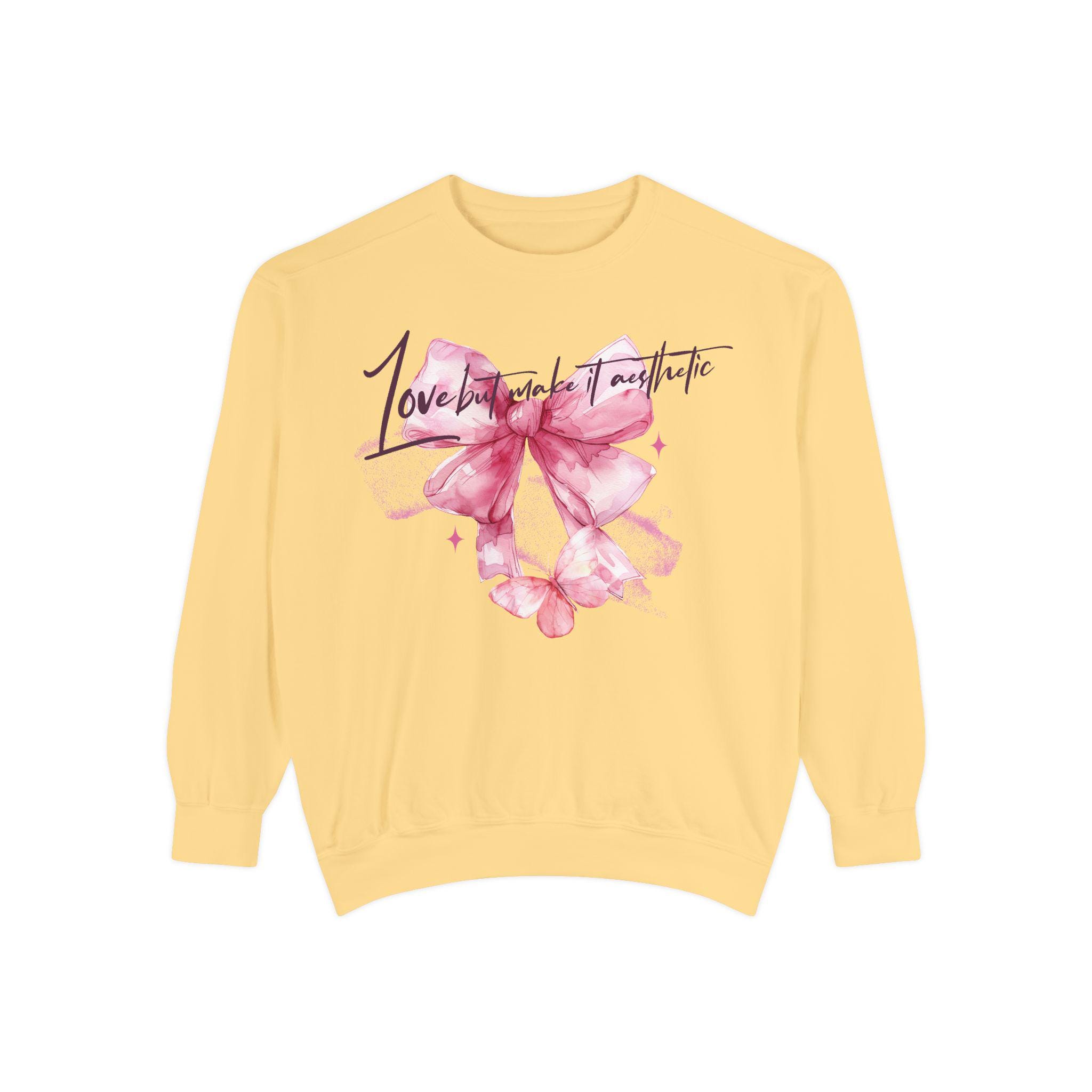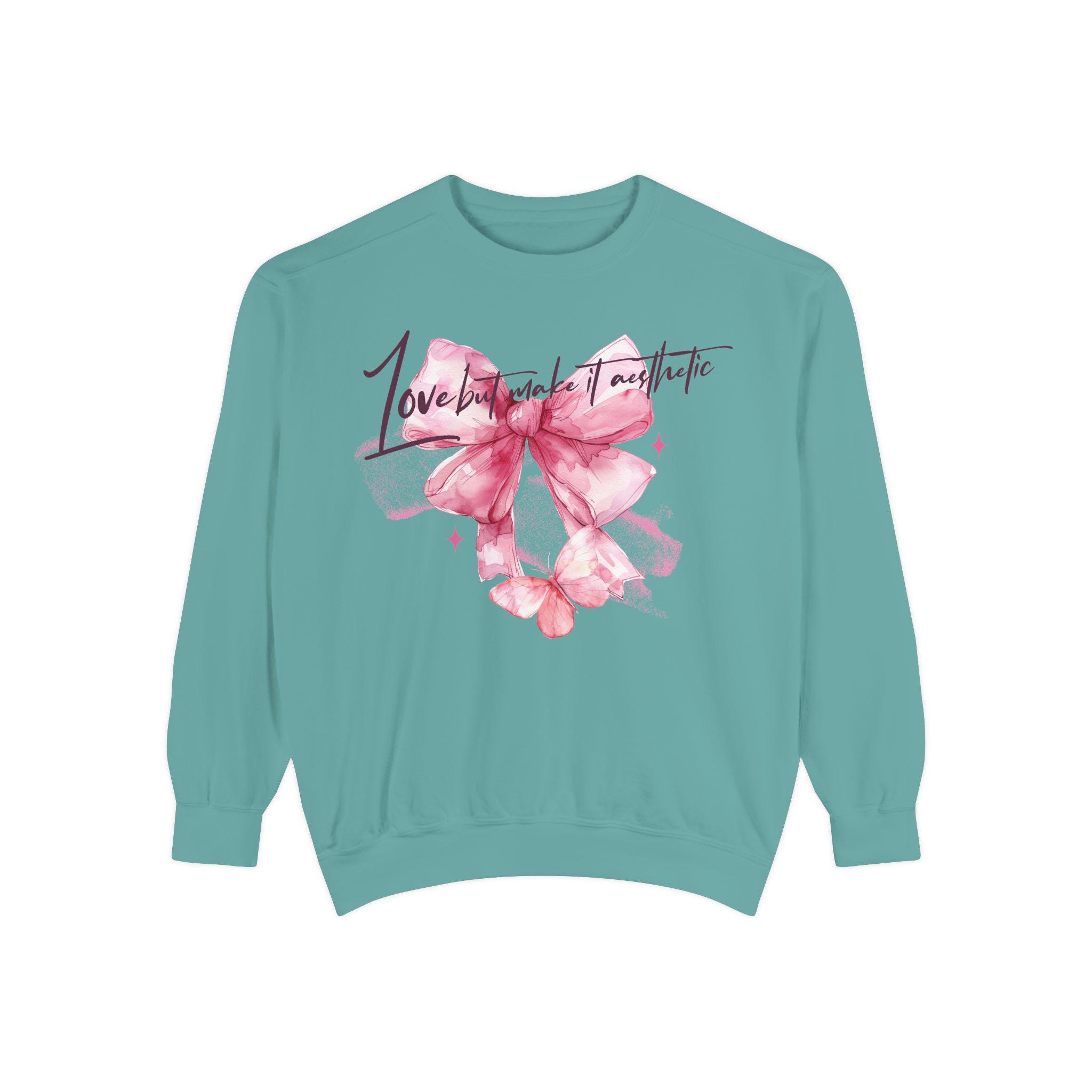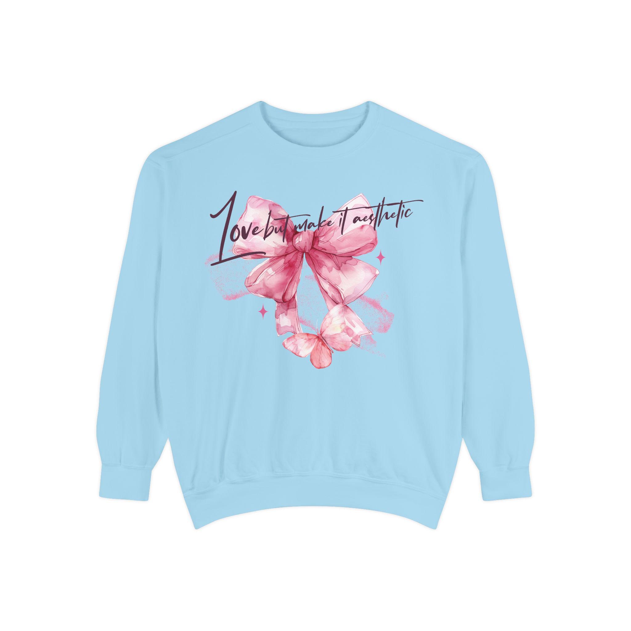 This Unisex Midweight Softstyle Fleece Crewneck Sweatshirt features Love but Make It Aesthetic design, giving off a cozy and casual vibe. Perfect for those who like to stay comfortable while expressing their love or just being Aesthetic. Great for Valentine's Day, anniversaries, or just for everyday wear.