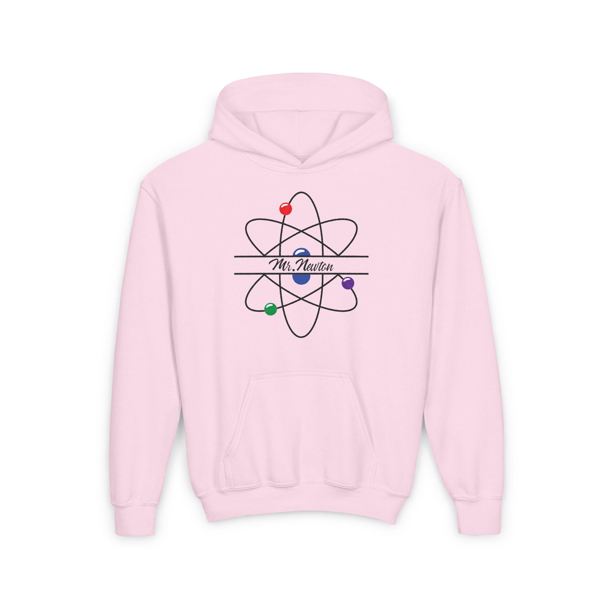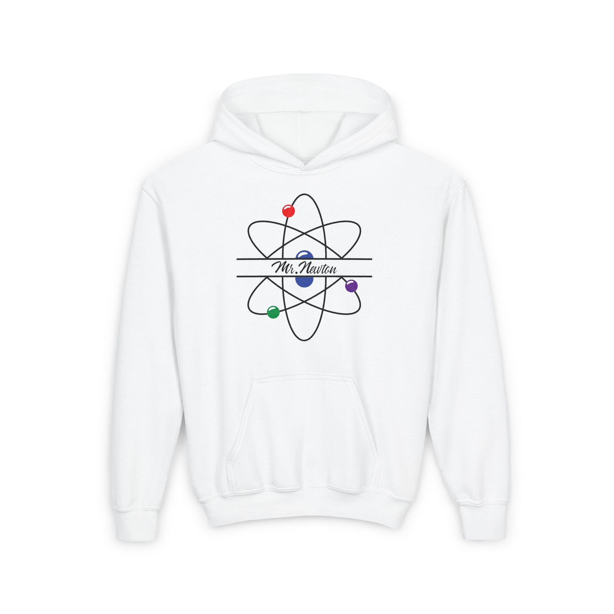 Mr. Newton Science Hoodie - Atom Design Hoodie for Science Lovers - Physics Teacher Gift - STEM Student Sweatshirt - Geeky Science Apparel.