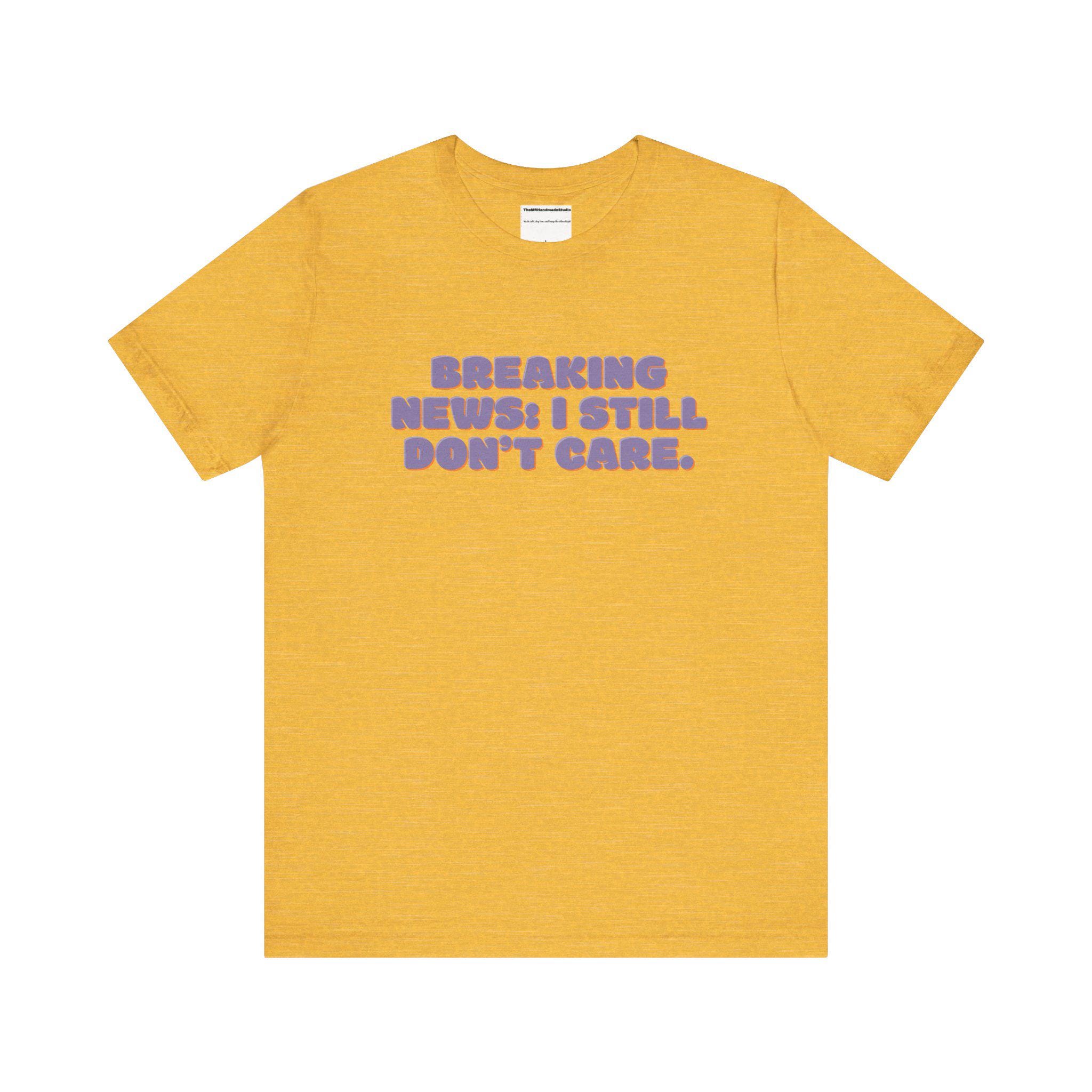 Whether you're in a laid-back mood or just want to add some humor to your outfit, this funny tee is perfect for casual days out or chilling at home. Say it loud with style—order your "Breaking News I Still Don’t Care" tee today and wear it proudly!