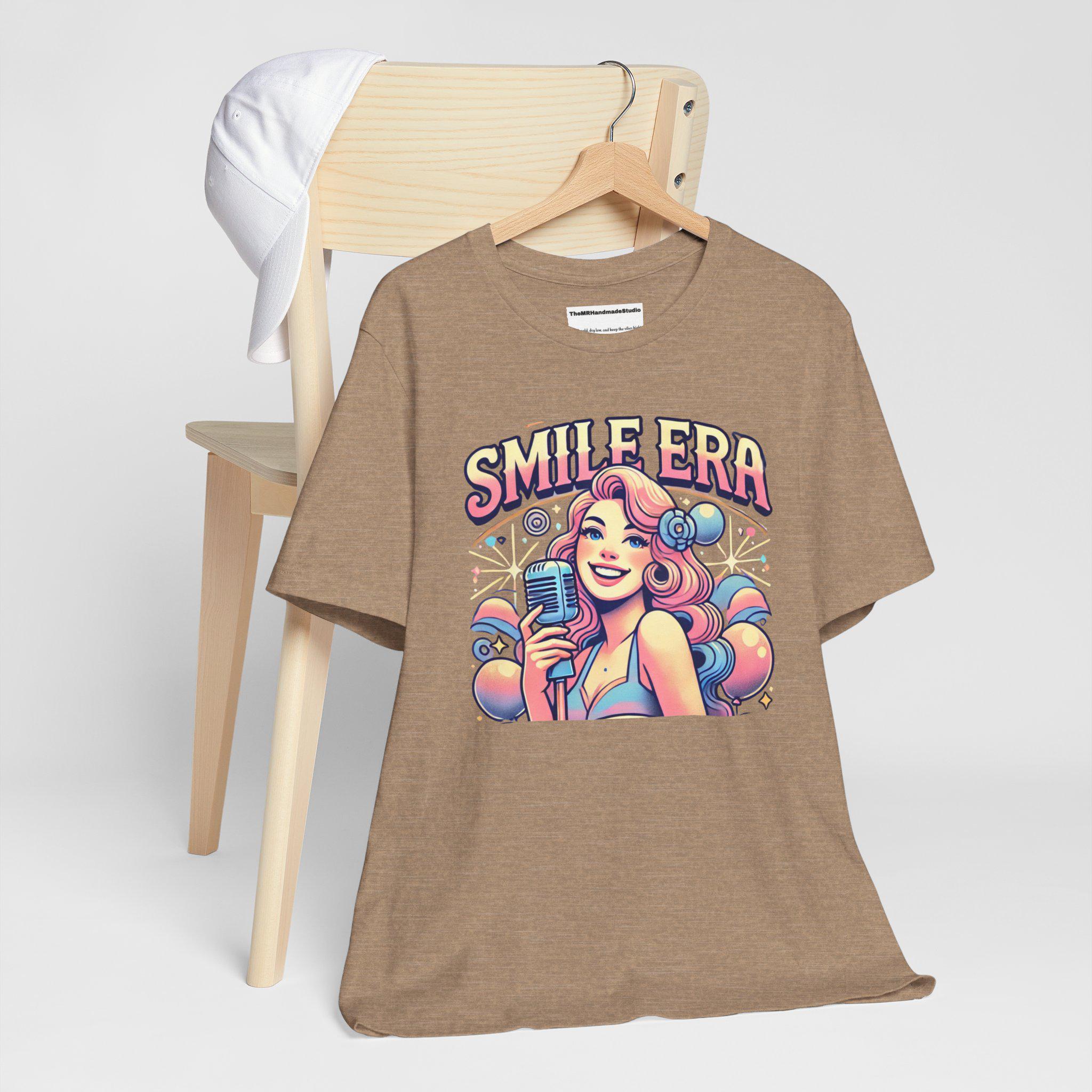 This Smile Era Unisex Tee is a colorful tie-dye shirt perfect for festivals and a retro, hipster vibe. Made with 100% Airlume combed and ring-spun cotton, this lightweight tee is great for active and leisure wear. The retail fit and classic crew neckline make it versatile for casual and semi-formal settings. Perfect for those who love abstract graphic tees and vibrant colors, this tee is ideal for festival-goers and those who enjoy unique, eye-catching designs. Relevant for music festivals, pride celebrations, and casual outings.