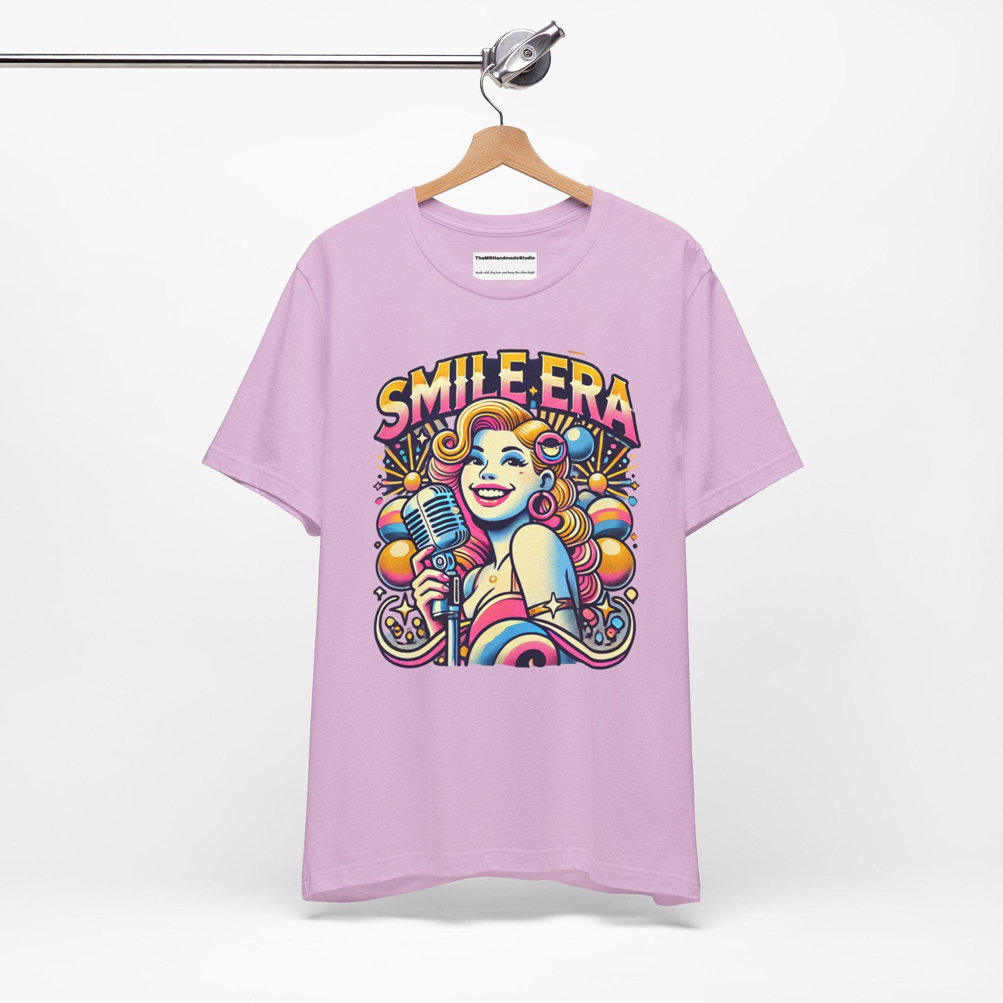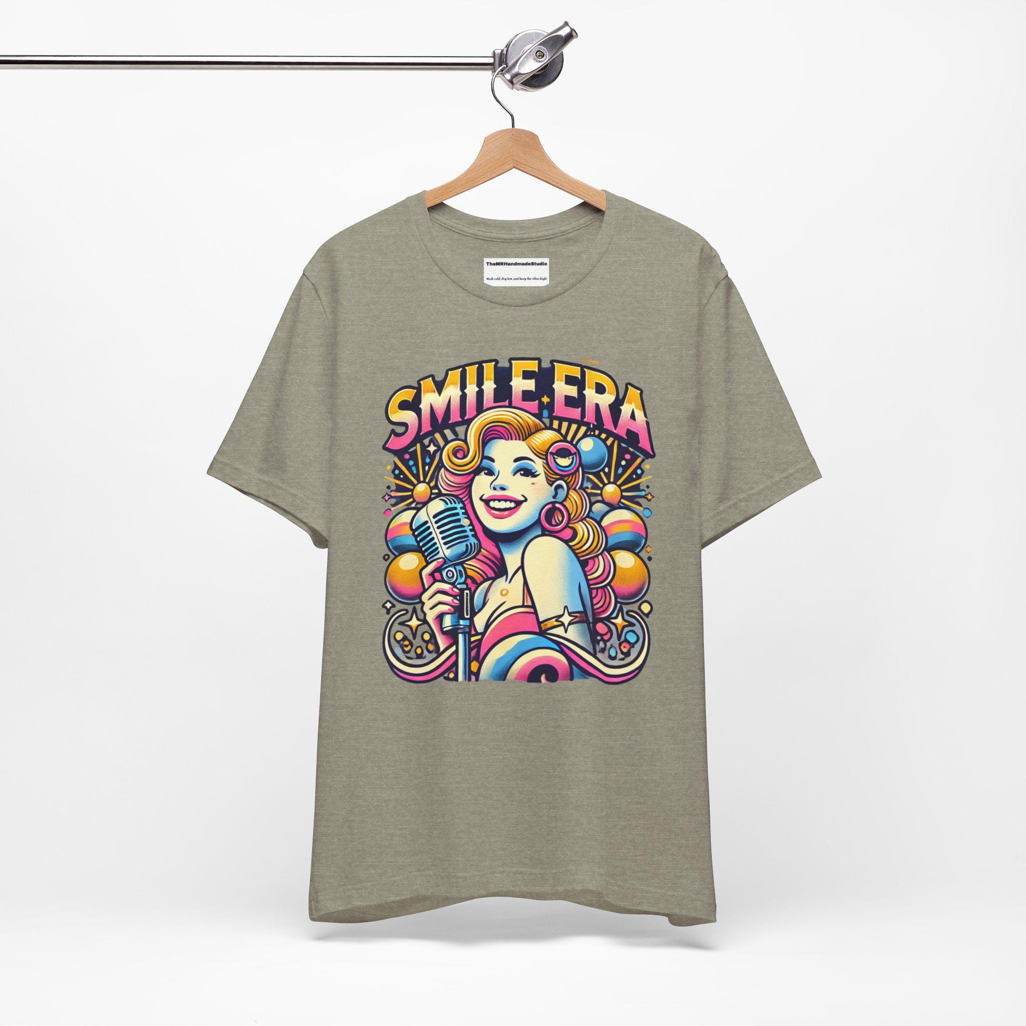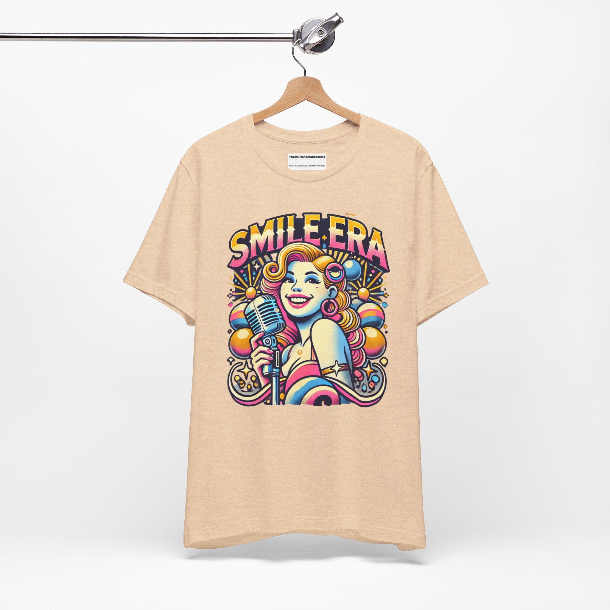This Smile Era Unisex Tee is a colorful tie-dye shirt perfect for festivals and a retro, hipster vibe. Made with 100% Airlume combed and ring-spun cotton, this lightweight tee is great for active and leisure wear. The retail fit and classic crew neckline make it versatile for casual and semi-formal settings. Perfect for those who love abstract graphic tees and vibrant colors, this tee is ideal for festival-goers and those who enjoy unique, eye-catching designs. Relevant for music festivals, pride celebrations, and casual outings.