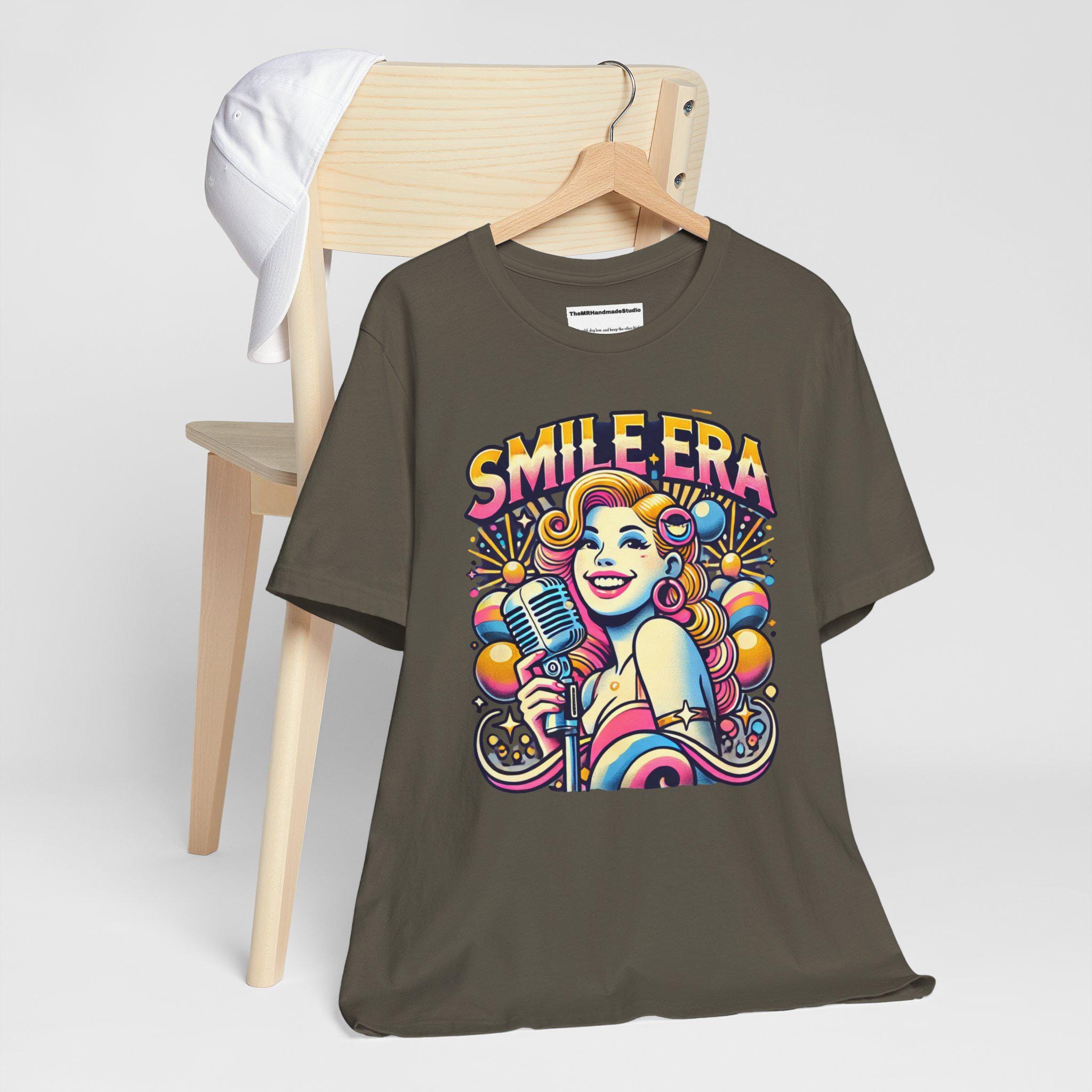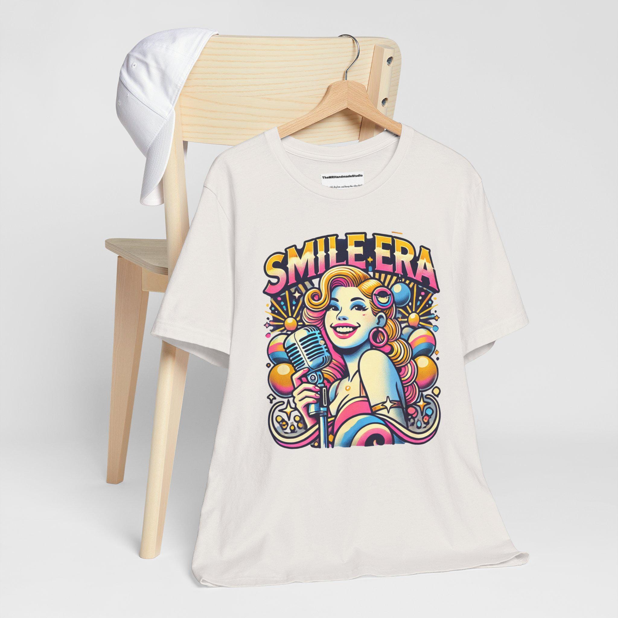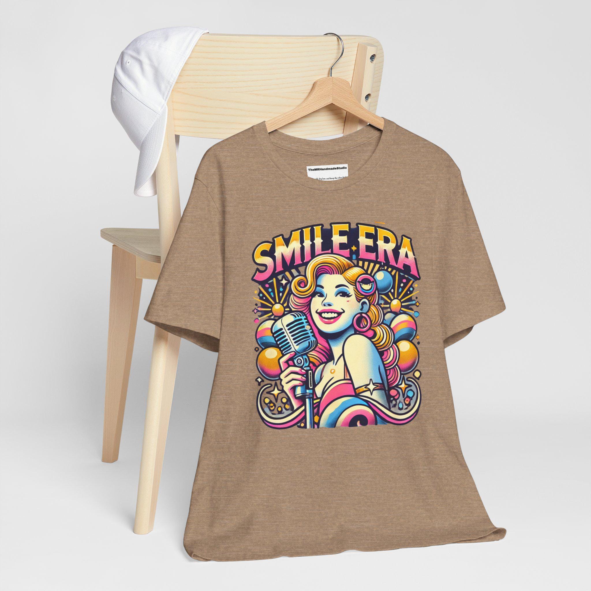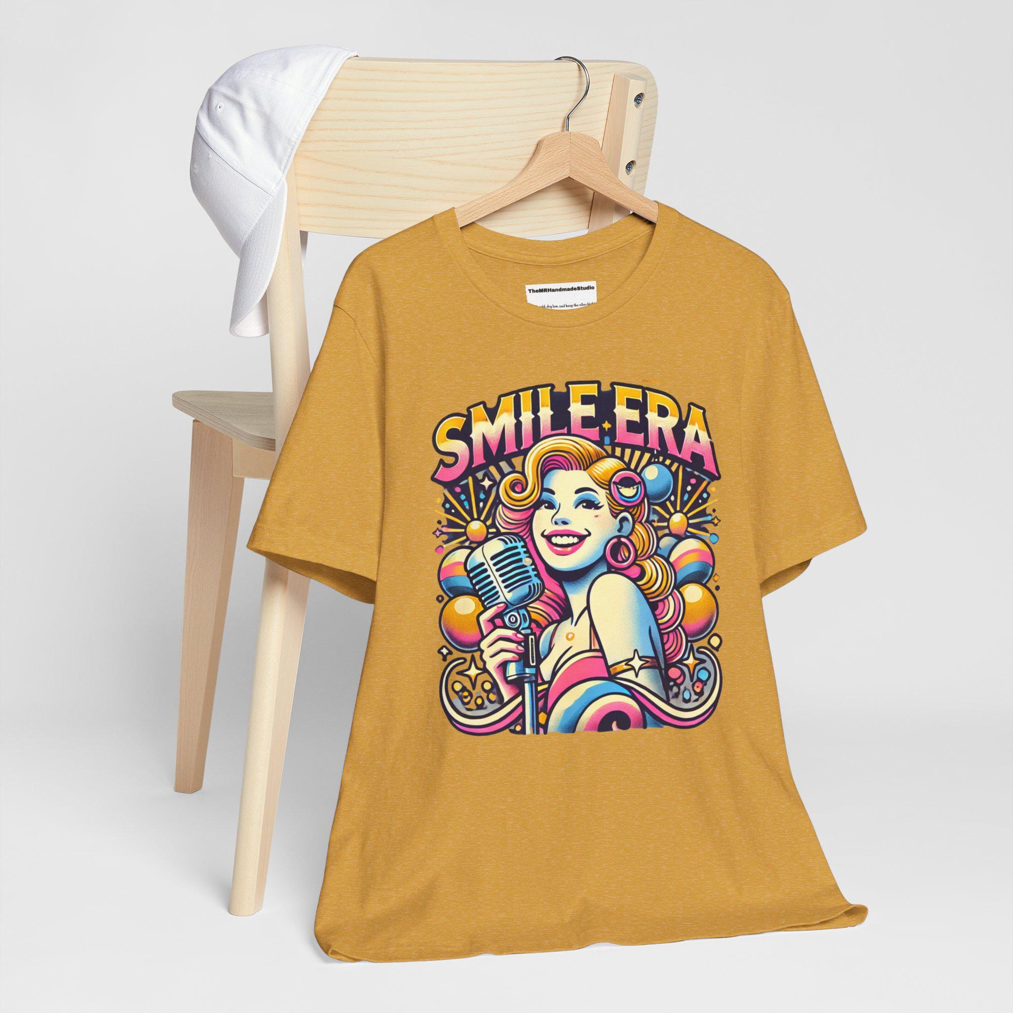 This Smile Era Unisex Tee is a colorful tie-dye shirt perfect for festivals and a retro, hipster vibe. Made with 100% Airlume combed and ring-spun cotton, this lightweight tee is great for active and leisure wear. The retail fit and classic crew neckline make it versatile for casual and semi-formal settings. Perfect for those who love abstract graphic tees and vibrant colors, this tee is ideal for festival-goers and those who enjoy unique, eye-catching designs. Relevant for music festivals, pride celebrations, and casual outings.