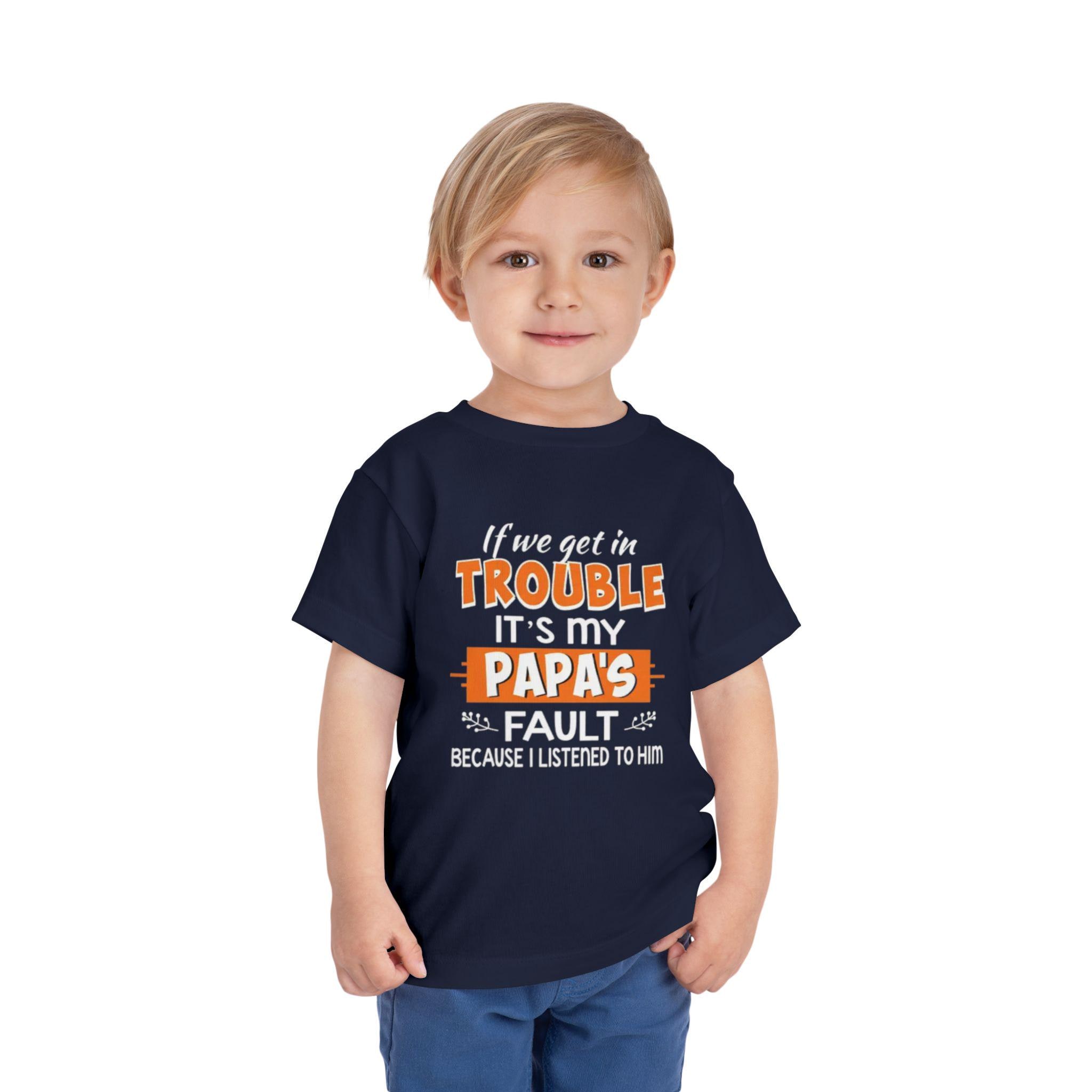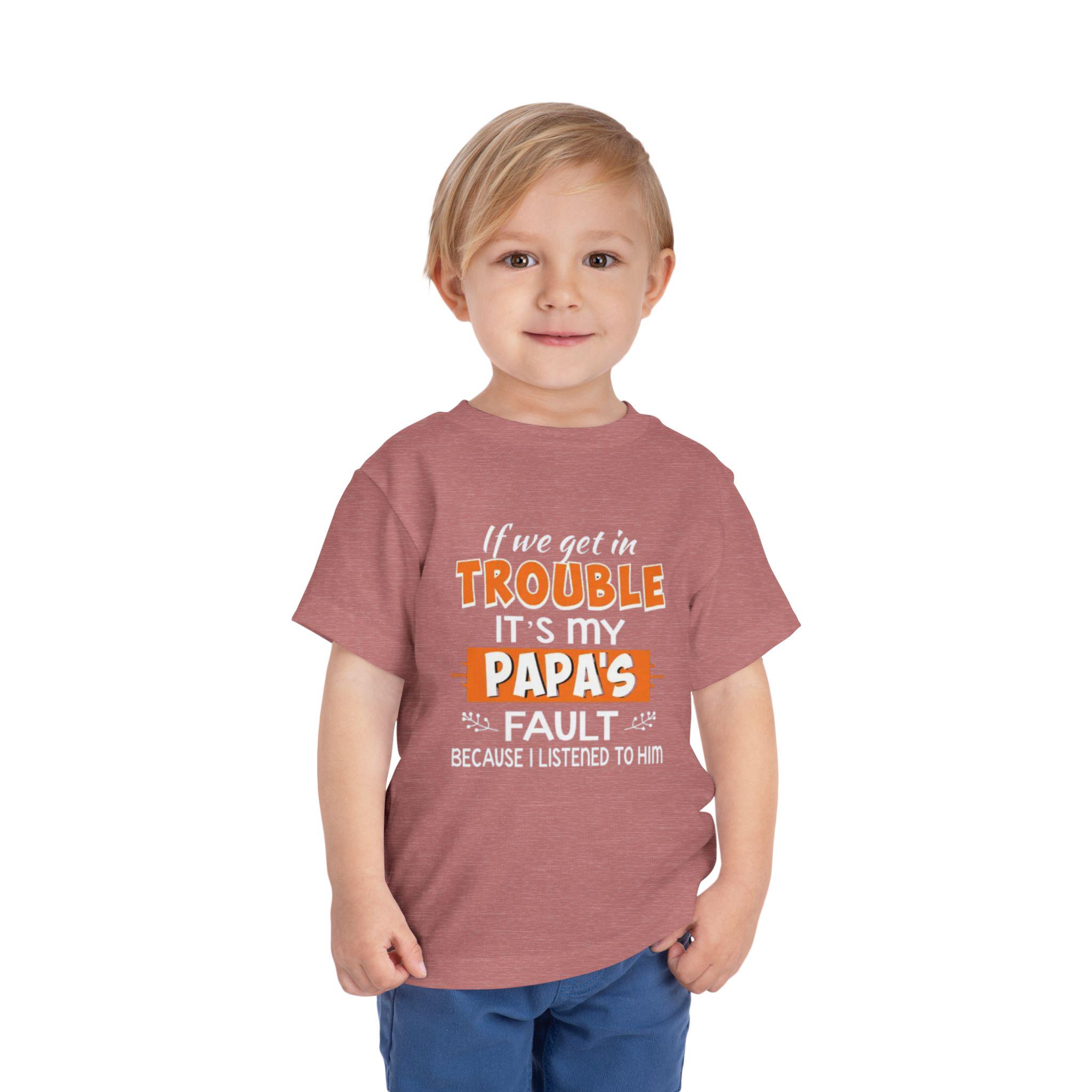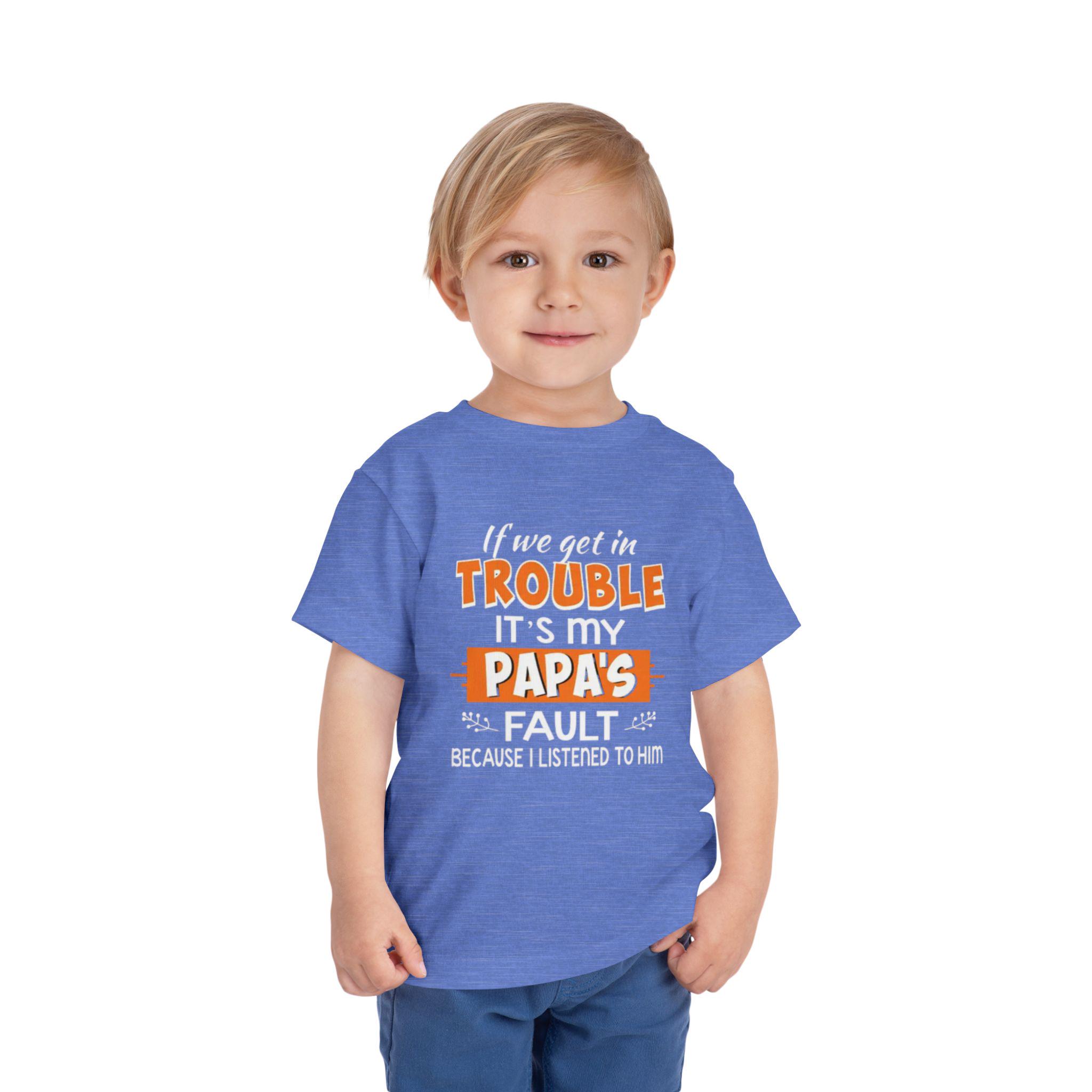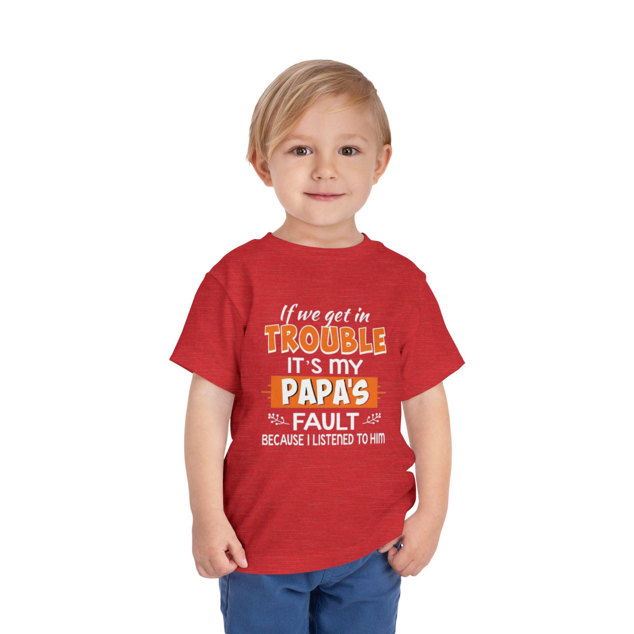 This adorable and funny toddler t-shirt is perfect for little ones who love their papa’s fun ideas but always end up in mischief! Whether for a birthday, family gathering, or just because, this comfy and stylish tee is a must-have for every playful kid!